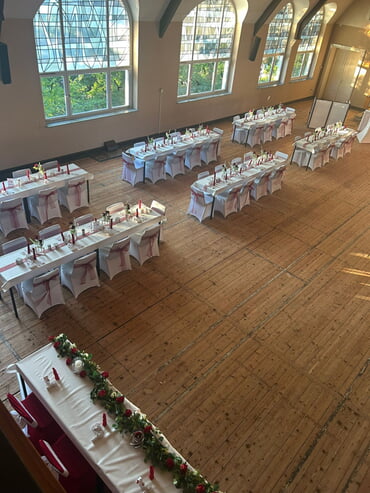An frei gestaltbaren Tischgruppe finden dort etwa 20 - 25 Personen Platz.